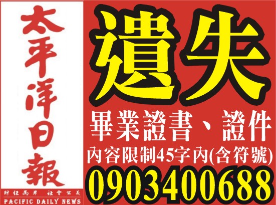 如果您很急要刊登,請先告之,不然遺失都幫您刊登太平洋日報,