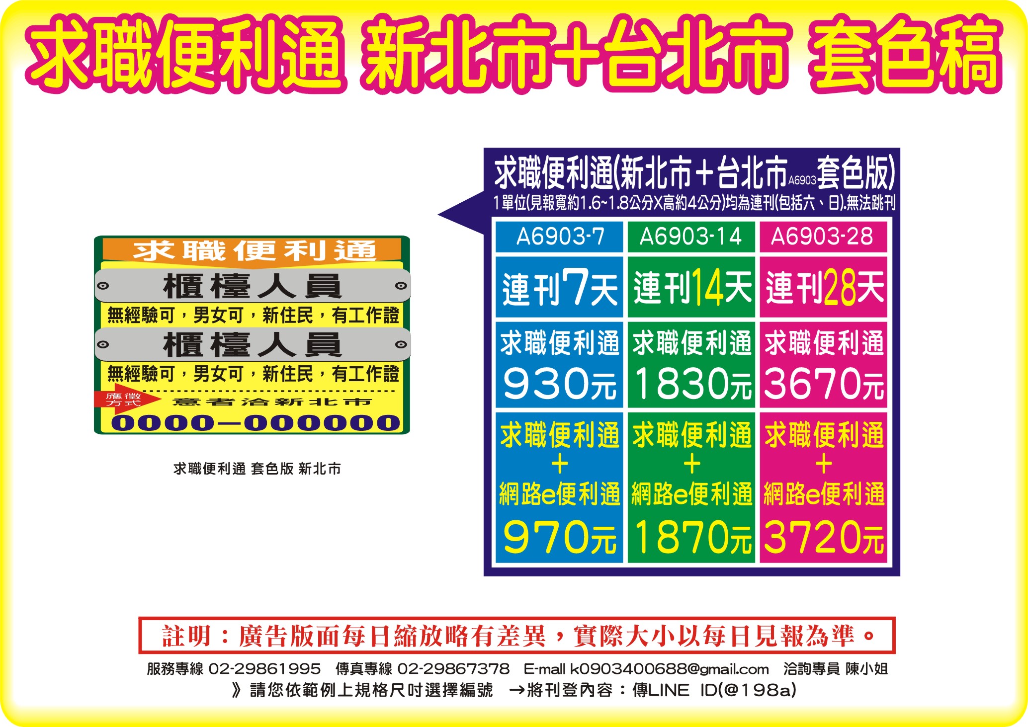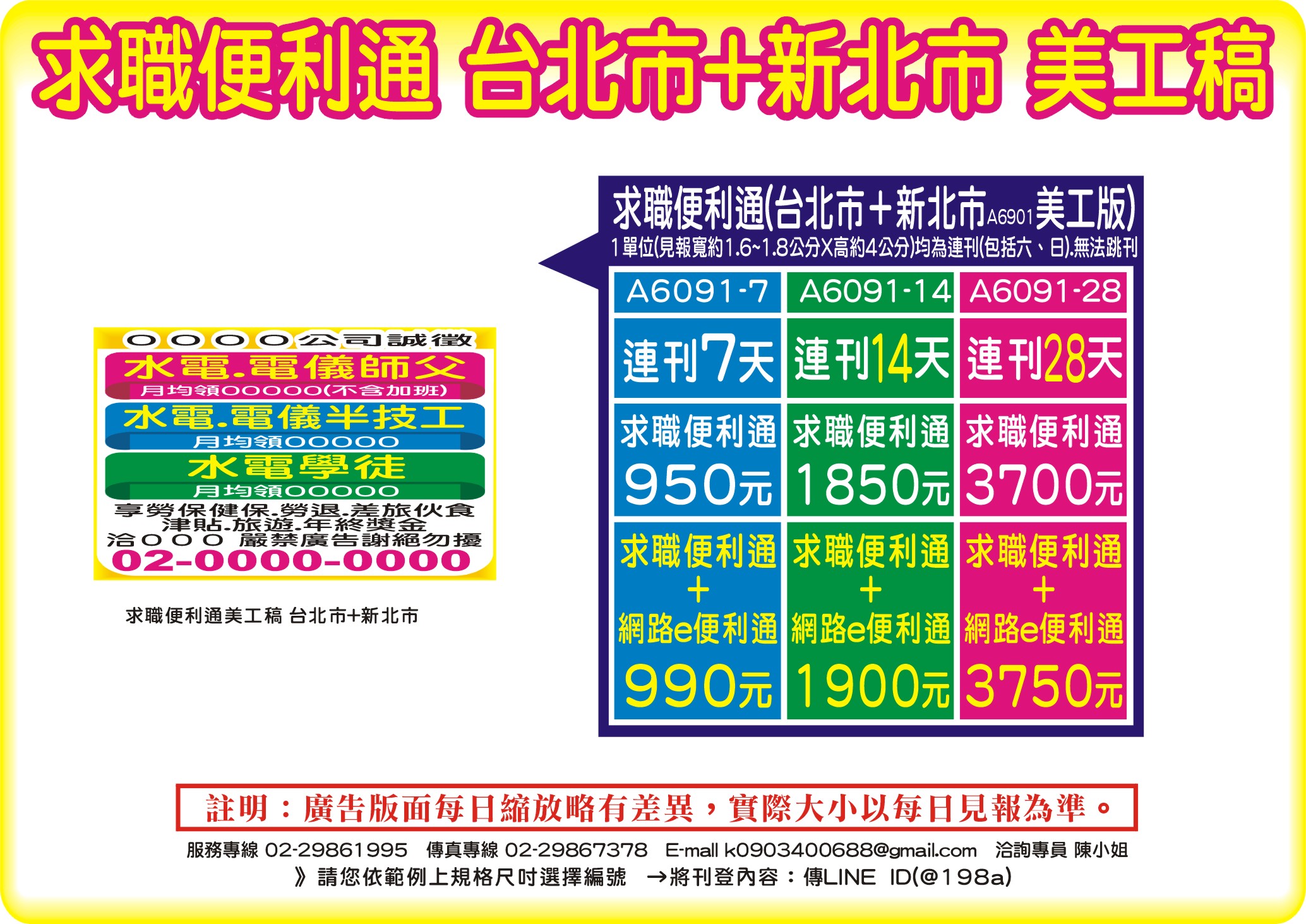 求職便利通刊登-台北市+新北市-徵人.找人才登刊報紙-廣告費用